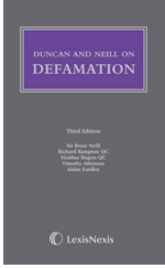 Duncan and Neill on Defamation Publisher: LexisNexis Authors: Sir Brian Neill, Richard Rampton QC, Heather Rogers QC, Timothy Atkinson & Aidan Eardley Price: £221.13 Edition: 3rd Edition (September 2009) ISBN: 978-0-406-17831-2 Buy from LexisNexis: Click Here |
